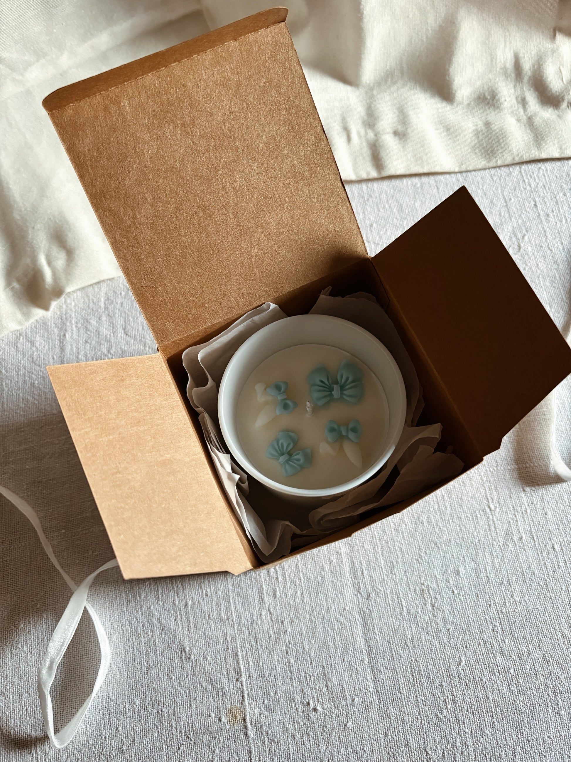 O design encantador inclui detalhes em cera com pequenos laços em tons rosados, tornando cada peça única e ainda mais especial. Acompanha uma embalagem cuidada, perfeita para oferecer sem precisares de mais nada.
