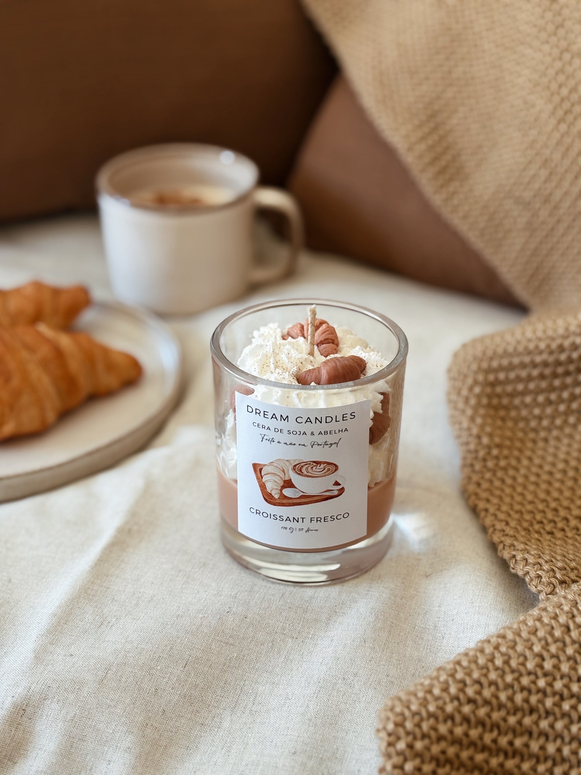 Desperte os sentidos com o aroma irresistível da nossa vela Croissant Fresco, uma fragrância acolhedora que transforma qualquer espaço num autêntico café parisiense.
