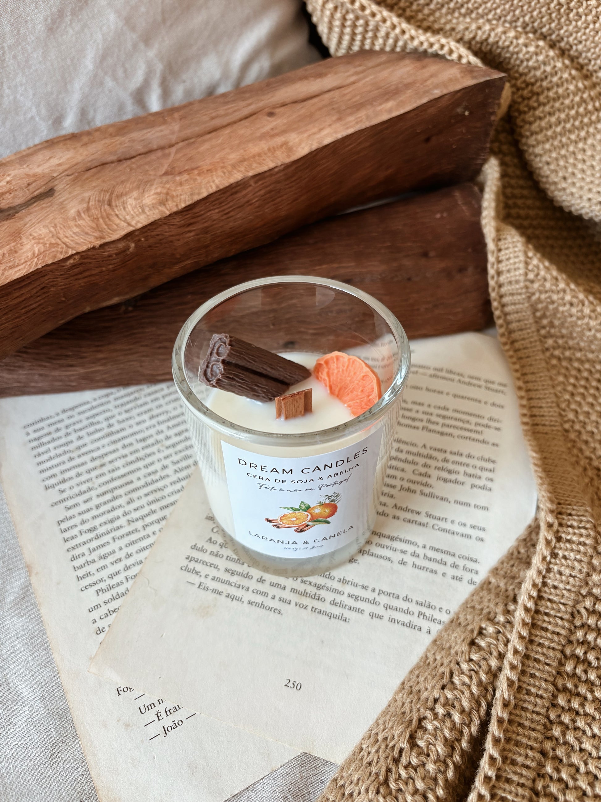 VELA EM COPO LARANJA E CANELA